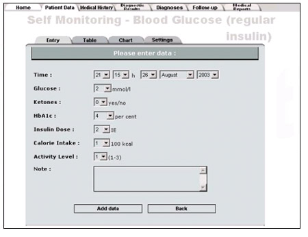 Each of 5 key values can be entered by the patient or a healthcare professional
